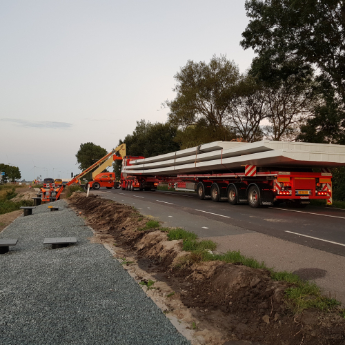 Om de veiligheid van het fietsverkeer te vergroten wordt een fietsbrug over de Ringsloot gerealiseerd aan de noordzijde van de N239 in Aartswoud. In samenwerking met KWS heeft Holland Scherm vorige week de composiet brugdekken geplaatst op de aangebrachte fundering.