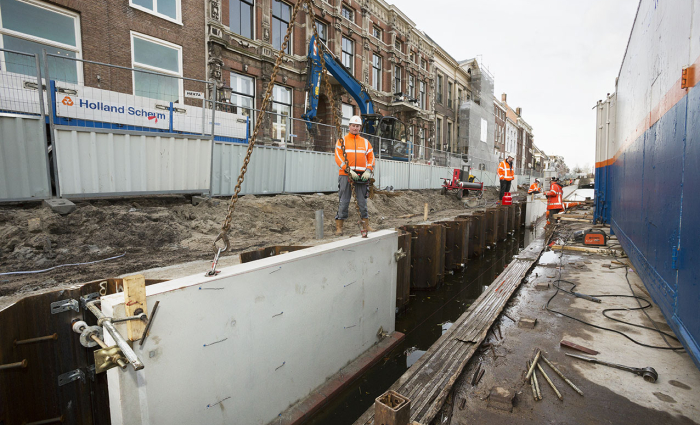 Het project kademuren Nieuwe Gracht, midden in de historische binnenstad van Haarlem, onderscheidt zich door de goede samenwerking tussen KWS Infra, Holland Scherm en de gemeente Haarlem.